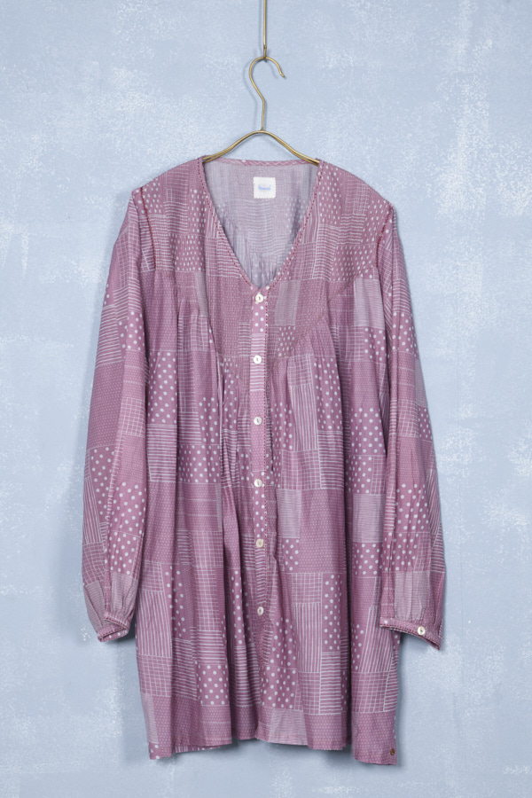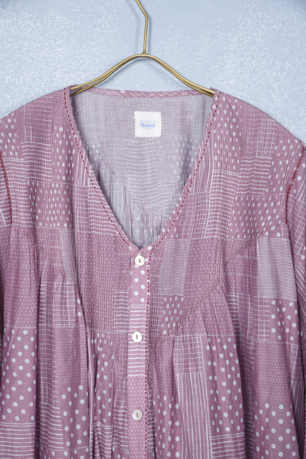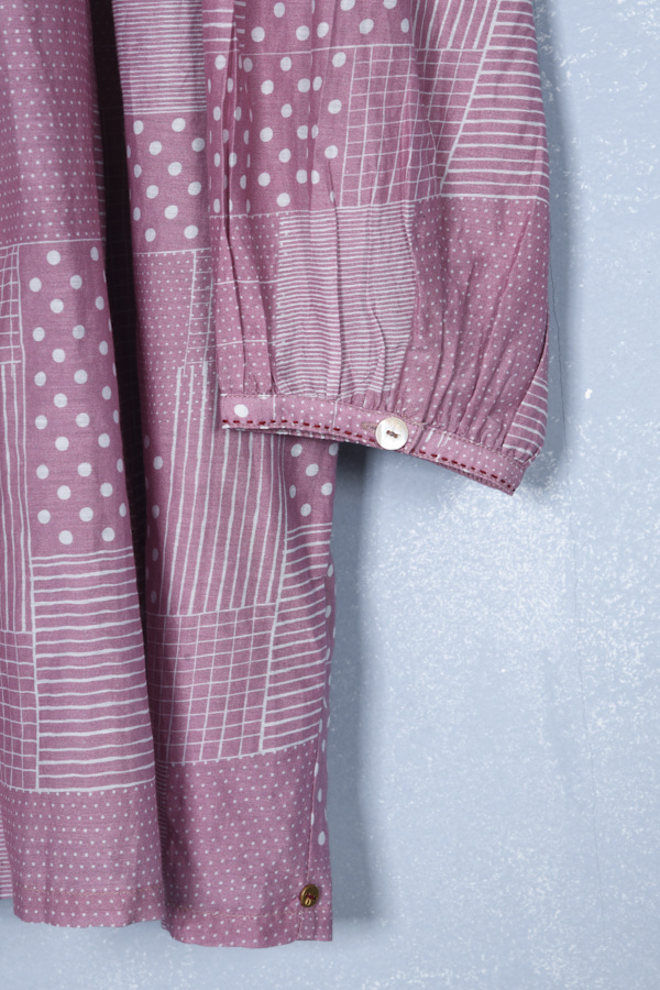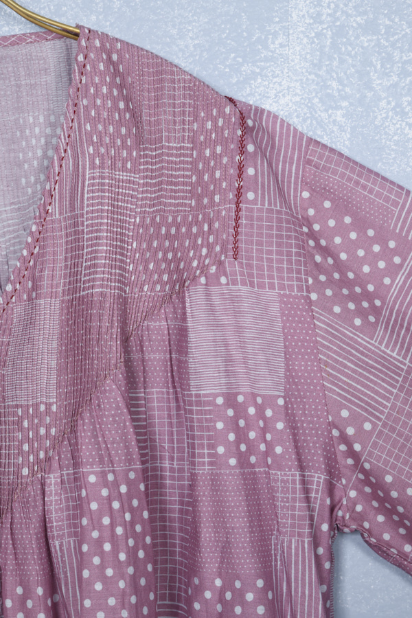 COTTON SILK PINTUCK PRINTED DRESS