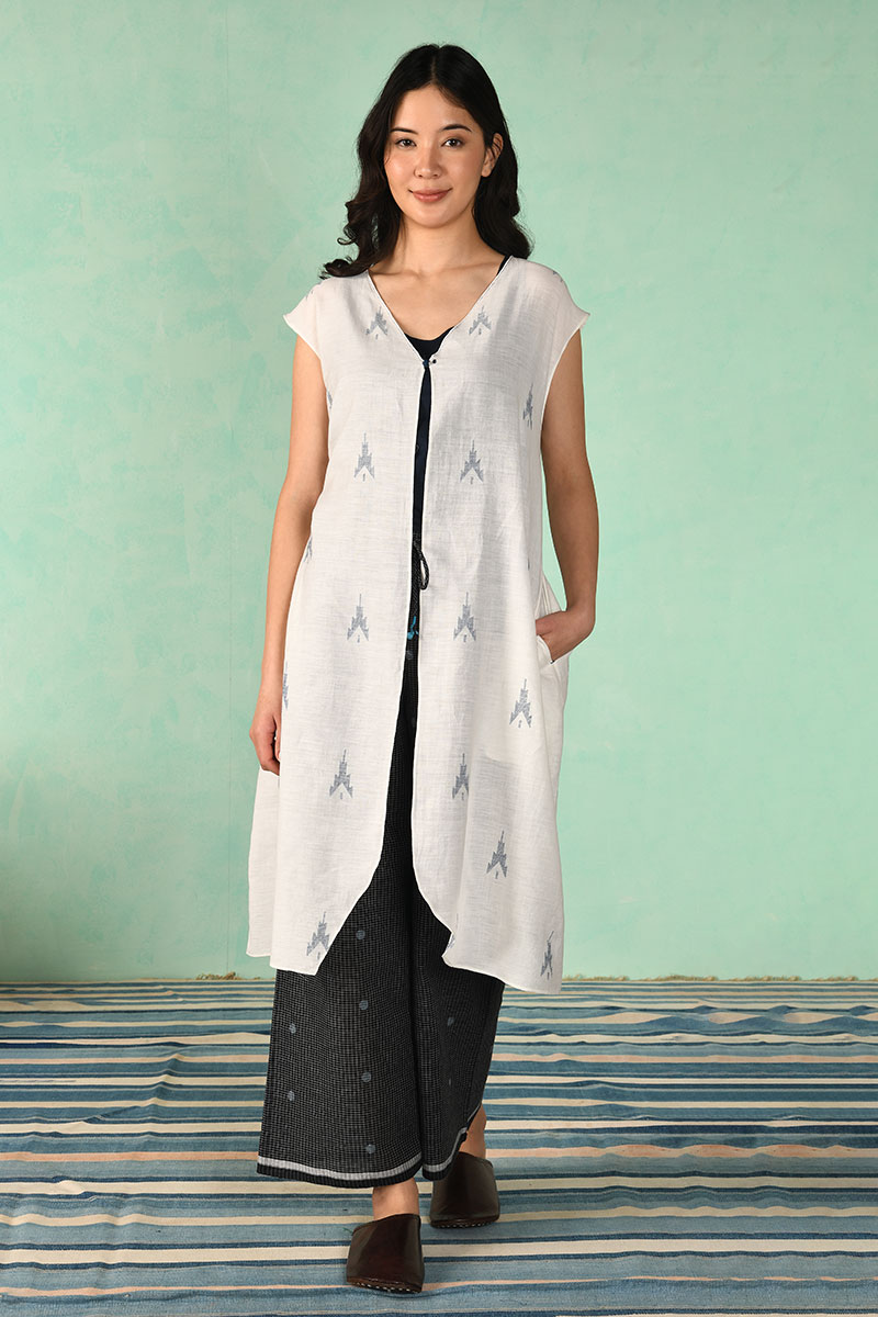 COTTON JAMDANI LONG VEST