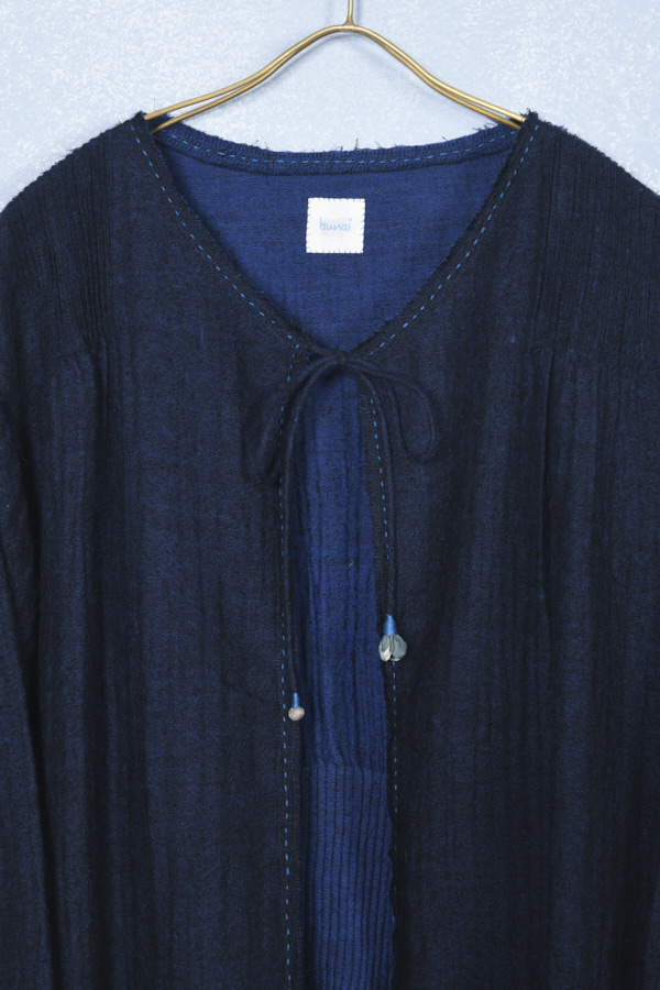 REVERSIBLE WOOL PINTUCK LONG CARDIGAN