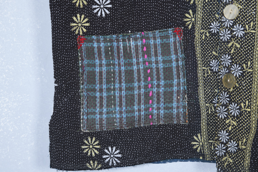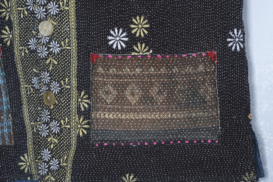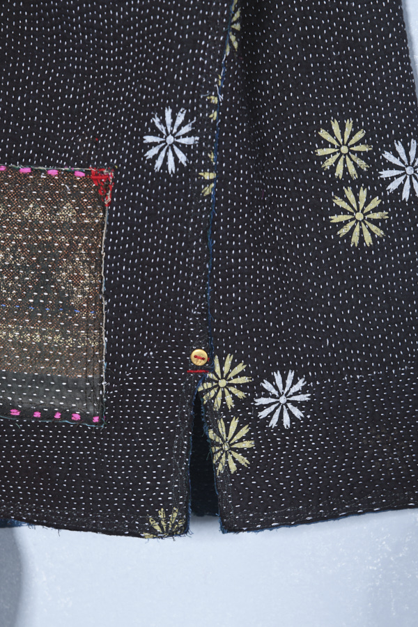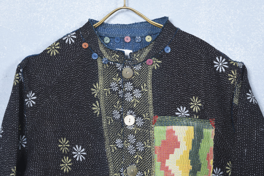 KANTHA REVERSIBLE SHORT JACKET WITH COLOURED PATCH POCKETS